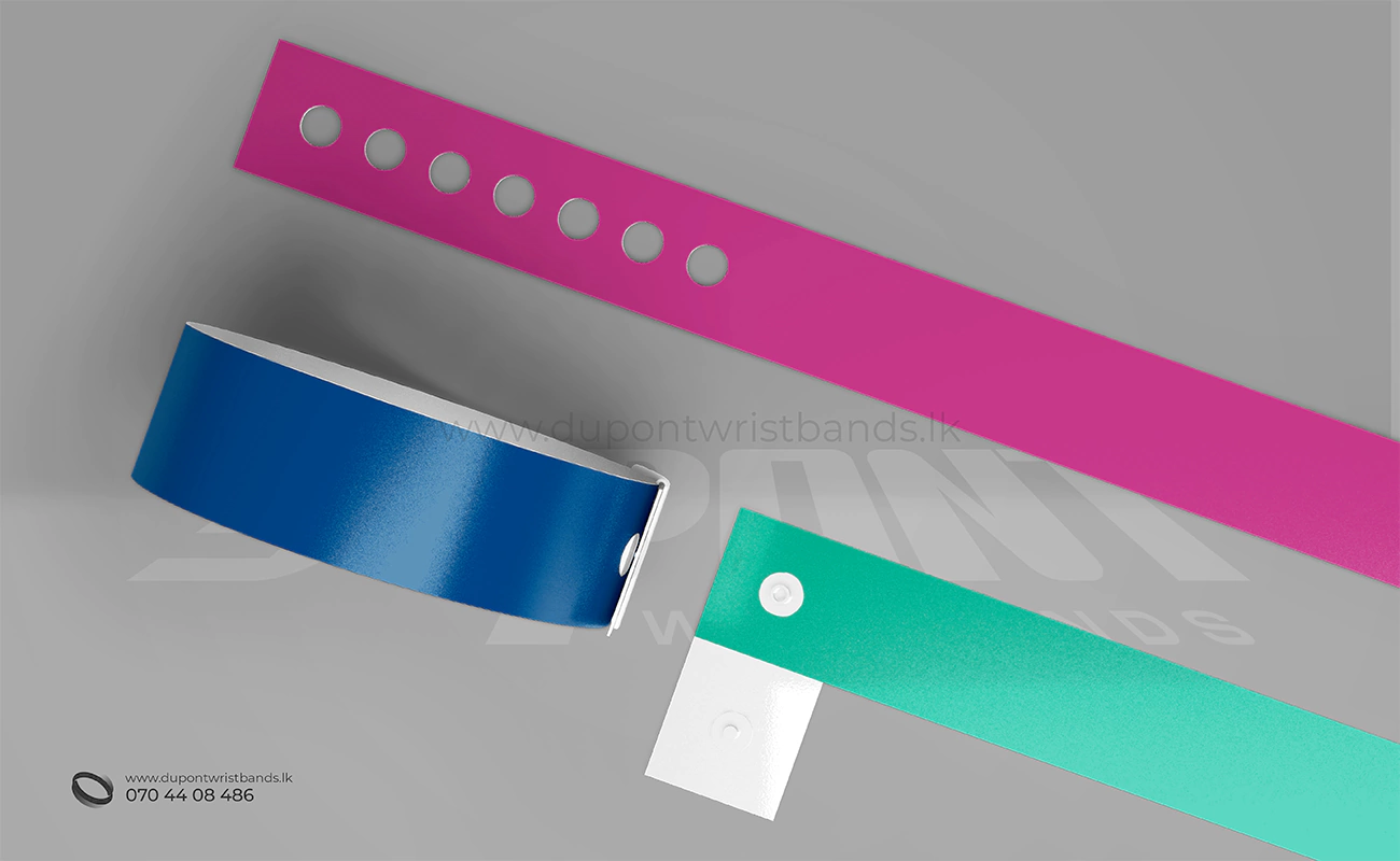 Wrist bands (vinyl wristbands) are comfortable and durable for extended wear.