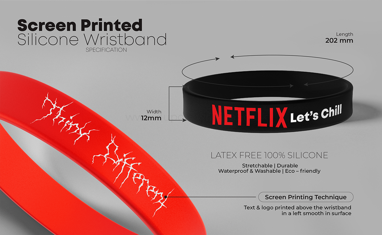 Our screen printed silicone Wristbands can be customized according to the client's requirement according to the text and designs provided like your own logos, images and text.